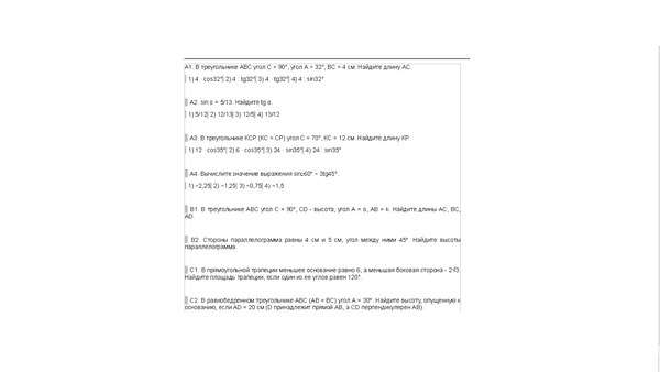 tg32^(o)=4/AC ⇒ АС=4/tg32^(o)