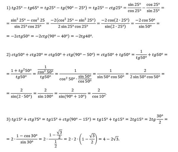 Преобразуйте выражение 1) tg 25 ° - tg 65 °