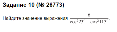 Найдите значение выражения 6/(cos^223+cos^2113)