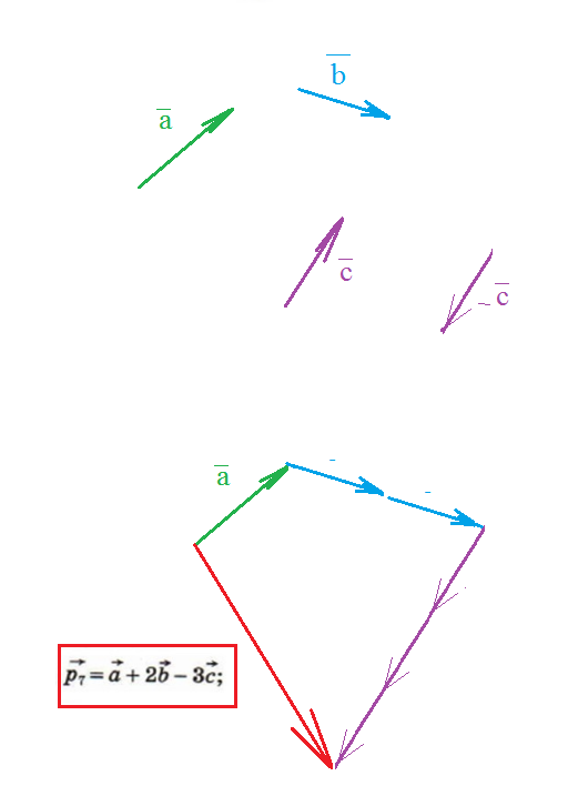 Даны векторы [m]\vec{a}, \vec{b} и \vec{c}[/m]. Постройте векторы заданные следующим образом: [m]\vec{p_1} = \vec{a} + 2\vec{b} - 3\vec{c}[/m];