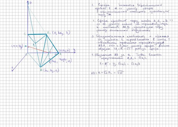 Сфера [m]\Omega[/m] с радиусом [m]\sqrt{5}[/m] проходит через вершины треугольника [m] A B A_1 [/m] и касается отрезка [m] C C_1 [/m] в точке [m] M [/m].