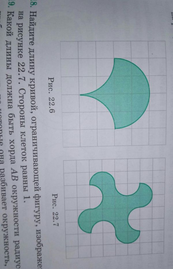 а) найдите длину кривой ограничивающей фигуру изображенную на рисунке 22.6 Стороны клеток равны 1 б) найдите длину кривой ограничивающей фигуру изображенную на рисунке 22.7 Стороны клеток равны 1