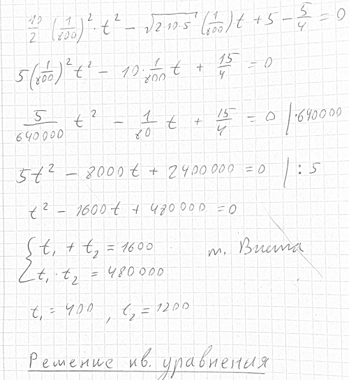 5/4 = 5 - sqrt(2*10*5) * (1/800) * t + (10/2)*(1/800)^2*t^2