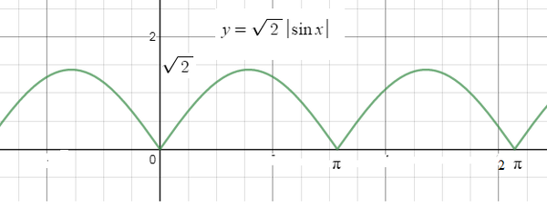 ∫ ^([b]100π[/b])_(0)sqrt(2sin^2x)dx=[red]sqrt(2)[/red] ∫ ^(100π)_(0) |sinx|dx=
