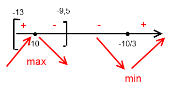Составим промежутки знакопостоянства (на рисунке)