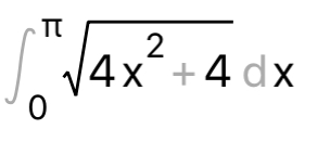 ∫ ^(π)_(0)sqrt(4x^2+4) dx=2 ∫ ^(π)_(0)sqrt(x^2+1)dx=