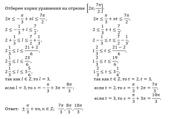 Указать корни, принадлежащие отрезку [2π;7π/2]