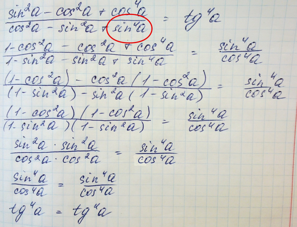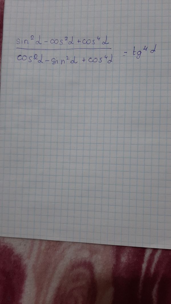 sin²d - cos²d + cos⁴d / cos²d - sin²d + cos⁴d = tg⁴d