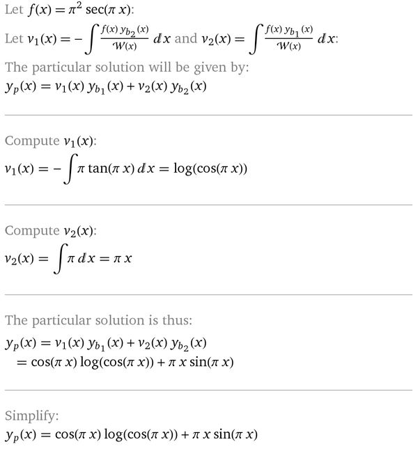 ОДУ y"+pi^2y=pi^2/cospix, y(0)=3, y'(0)=0 Никак не получается, помогите решить, пожалуйста!
