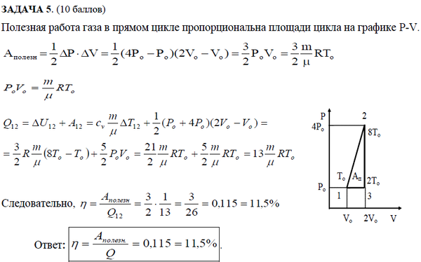 На P - V диаграмме изображен цикл 1-2-3-1, проводимый с одноатомным идеальным газом. Определите коэффициент полезного действия этого цикла