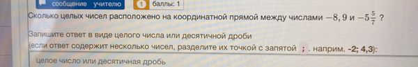 Сколько целых чисел расположено на координатной прямой между числами -8,9 и - 5 5/7?