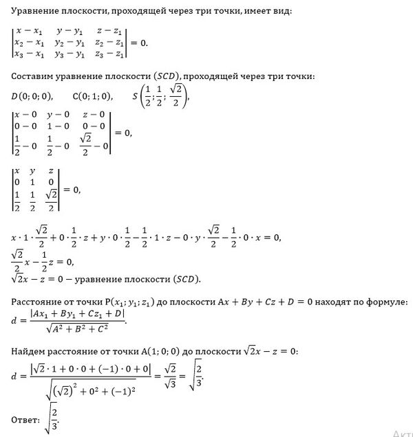 В правильной четырехугольной пирамиде SABCD, все ребра которой равны 1, найдите расстояние от точки А до плоскости SCD. Решить ВЕКТОРНЫМ способом.