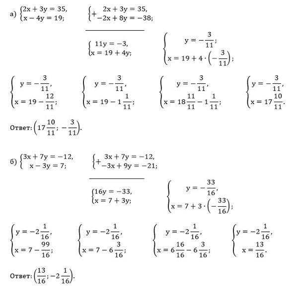 Помогите подробно решить Решить систему методом алгебраического сложения: А. { 2 x+3 y=35 x−4 y=1 9 Б. {3 x+7 y=-12 x-3 y=7