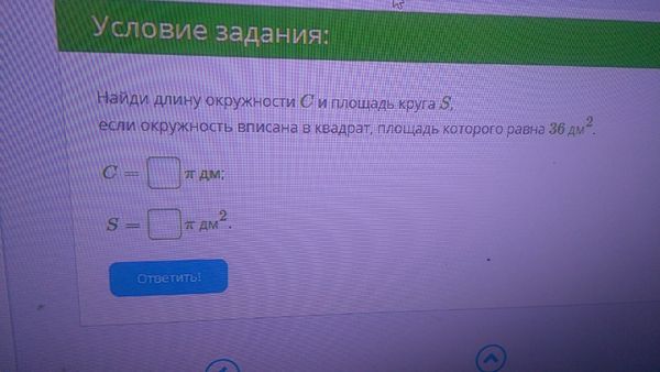 если окружность вписана в квадрат, площадь которого равна 36 дм2.