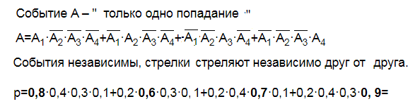 А_(4) четвертый стрелок попал, vector{A_(4)} - четвертый стрелок не попал.