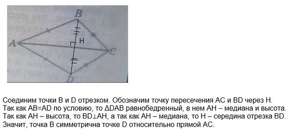 Доказать, что точки B и D симметричны относительно прямой AC