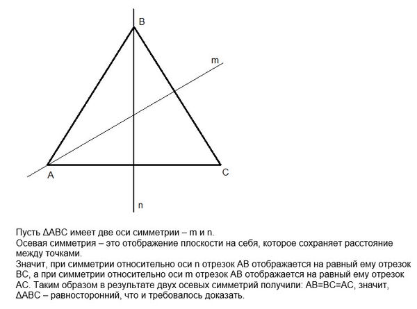 Доказать, что если треугольник имеет две оси симметрии, то он равносторонний.