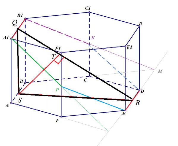 Cоединяем точку М с точкой В_(1). Прямая B_(1) M пересекает ребро CC_(1) в точке К