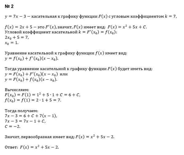 2) Найдите ту первообразную функции f(x)=2x+5, для графика которой прямая у=7х-3 является касательной.