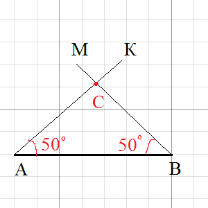 От точки А откладываем угол в 50 ° и проводим луч АК