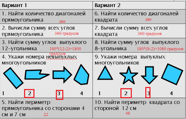 Периметр - сумма всех сторон P_(прямоугольника)=4+7+4+7=22 P_(квадрата)=12+12+12+12=48