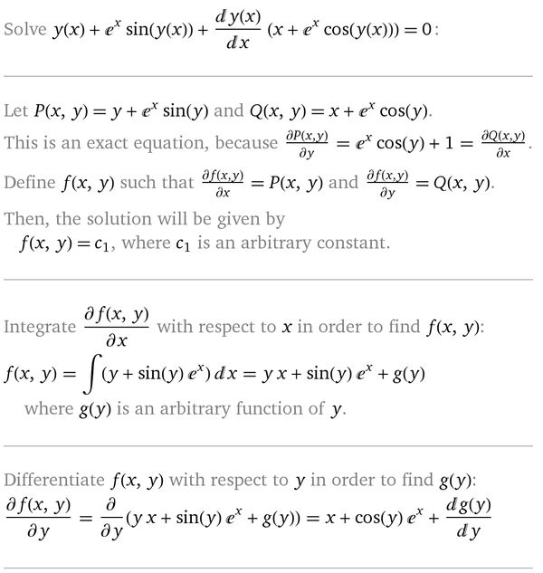 (y+e^x sin y) dx +(x+e^x cos y)dy=0
