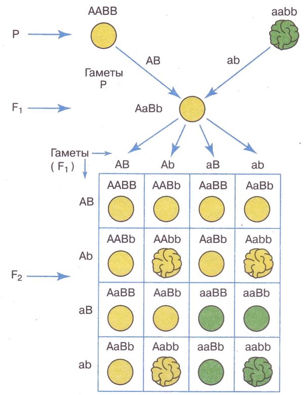 Определите соотношение фенотипов при самоопылении дигетерозиготного растения гороха при независимом наследовании признаков. Ответ запишите в виде последовательности цифр в порядке их убывания.