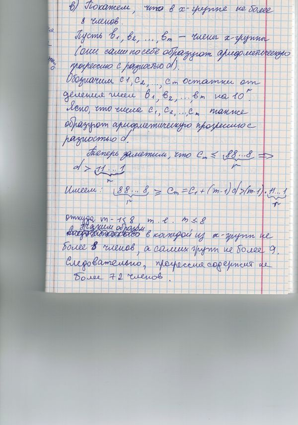 Итак, всего членов прогрессии не больше чем 7·9 + 8 + 1 = 72.