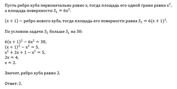 Если каждое ребро куба увеличить на 1, то его площадь поверхности увеличится на 30. Найдите ребро куба.