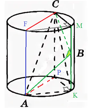 б) Найдите радиус цилиндра, если В –середина образующей. АВ = 3, ВС = 5, угол АВС = 120º.