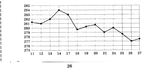 На рисунке жирными точками показана цена золота на момент закрытия биржевых торгов во все рабочие дни с 11 по 27 июля 2000 года. По горизонтали указываются числа месяца, по вертикали — цена унции золота в долларах США. Для наглядности жирные точки на рисунке соединены линией. Определите по рисунку, сколько дней из данного периода цена золота на момент закрытия торгов была меньше 278 долларов США за унцию.