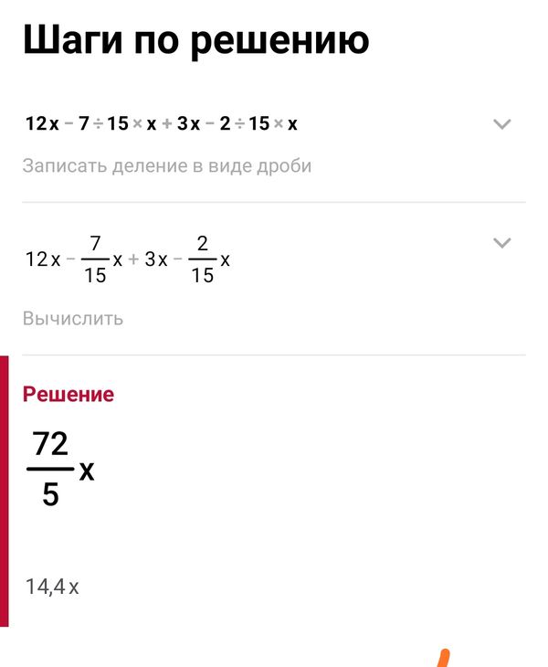 Выполните действия 12x-7/15x+3x-2/15x...