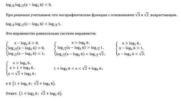 Решить нервество log(sqrt(3))log(sqrt(2))( x - log₅ 6) < 0