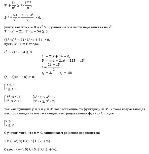 9^(x)*x^2+54 ≥ 7*x*3^(x+1)