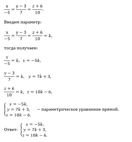ПОМОГИТЕ С ПОДРОБНЫМ РЕШЕНИЕМ И ОБЪЯСНЕНИЕМ 6.Прямая задана уравнением х/-5=у-3/7=z+6/10 . Задайте прямую параметрически.
