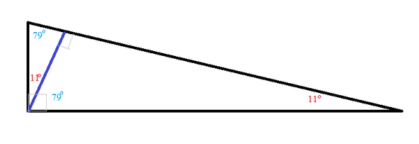 2. Угол с большим катетом равен 11°.