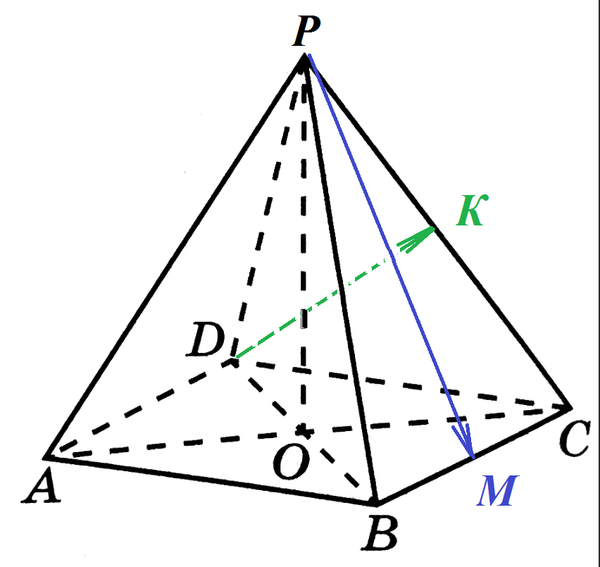 сos ∠ (vector{PM},vector{DK})=(vector{PM}*vector{DK})/(|vector{PM}|*|vector{DK}|)