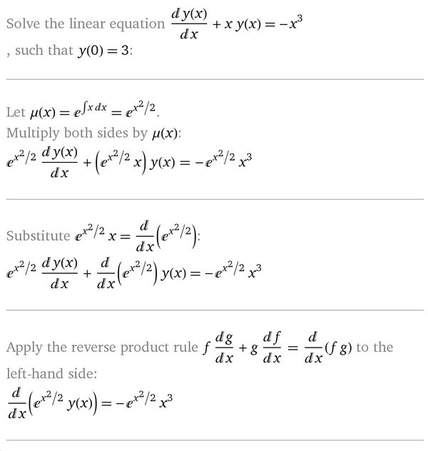 y' + xy = - x^3 ; y(0)=3...
