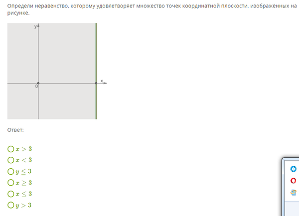 Определи неравенство, которому удовлетворяет множество точек координатной плоскости, изображённых на рисунке.