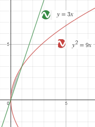 y^2=9x ⇒ y=3sqrt(x) - верхняя ветвь.
