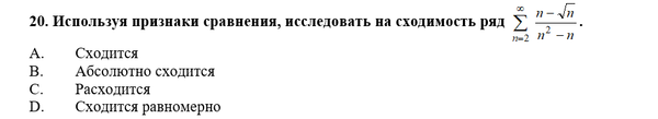 20. Используя признаки сравнения, исследовать на сходимость ряд