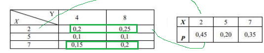 1.-5. Якість продукції характеризується двома випадковими параметрами: X та Y. Знайти закон розподілу складової X двовимірної випадкової величини, закон розподілу якої наведений в таблиці.