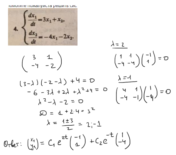 { dx1/dt = 3x1 + x2, { dx2/dt = -4x1...