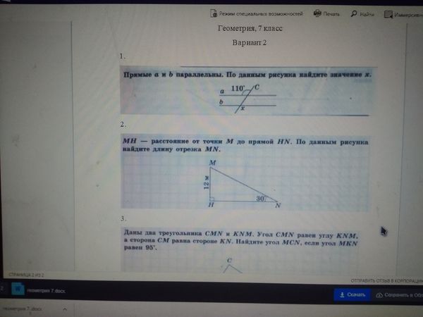 2. МН — расстояние от точки М до прямой HN. По данным рисунка найдите длину отрезка MN.