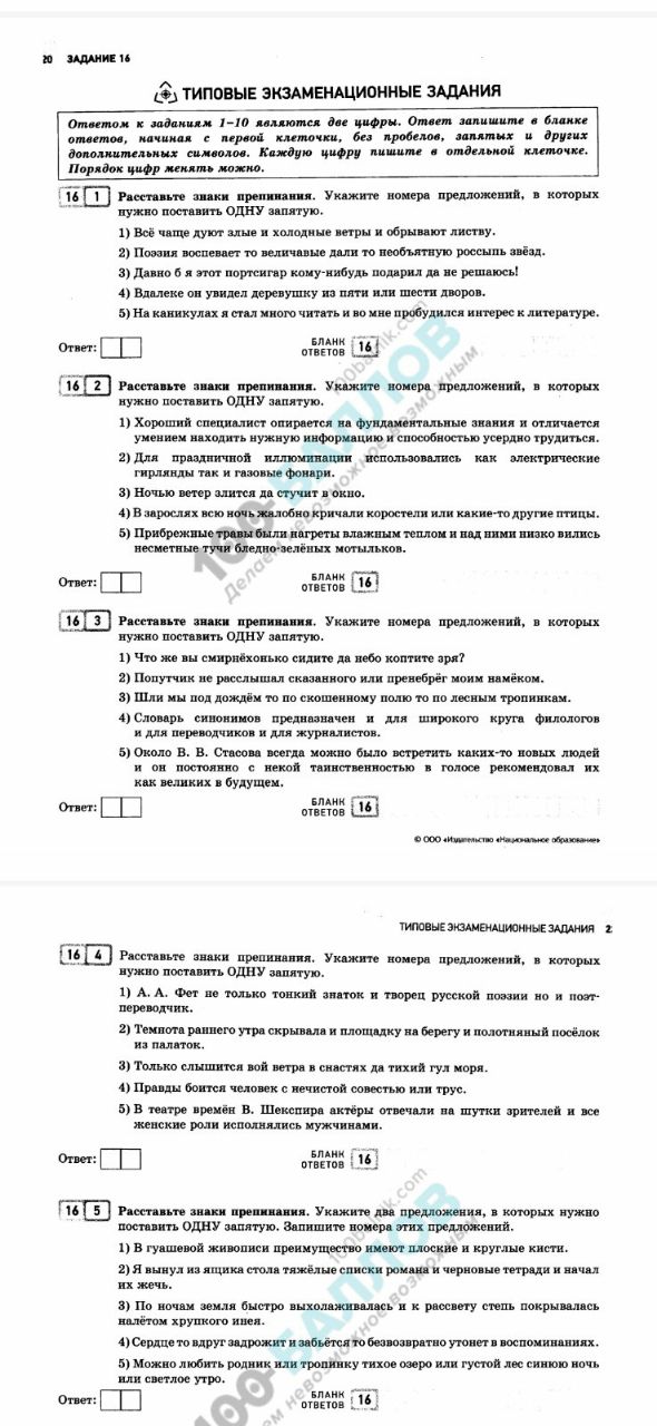 16 4 Расставьте знаки препинания. Укажите номера предложений, в которых нужно поставить ОДНУ запятую.