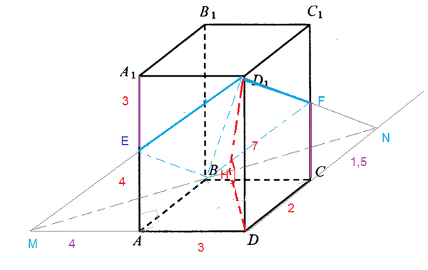 Продолжим стороны cечения D_(1)F и DC до пересечения в точке N, а стороны D_(1)E и DA в точке М