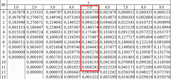 P_(1000)(0)= (5)^(0)/0!)e^(-5) ≈ 0,006738