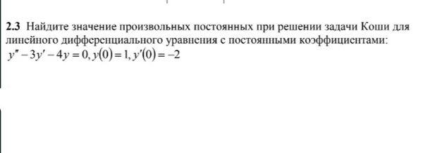 О т в е т. y=1,2e^(-1*x)-0,2*e^(4*x) - решение задачи Коши.