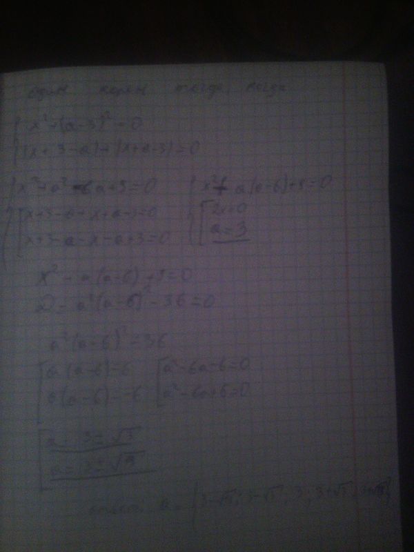 x^2+(a-3)^2=|x+3-a|+|x+a-3| найти все значения а, при каждом из которых уравнение будет иметь один единственный корень.
