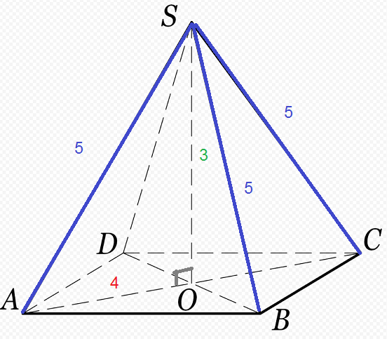 3. В правильной четырехугольной пирамиде высота равна 3 см, боковое ребро - 5см. Найдите объем пирамиды.